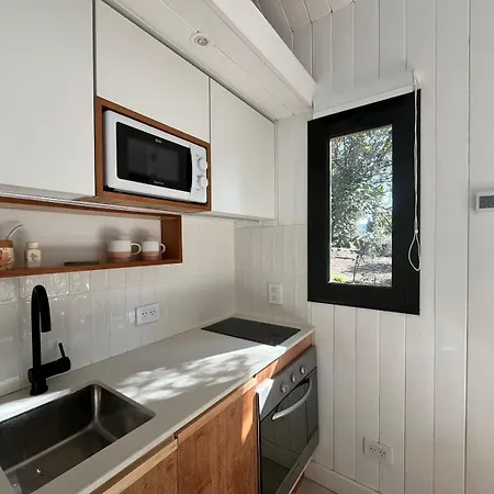 Moderna Casa En La Montana Villa beschikt over een keuken met een magnetron, een waterkoker en een koelkast. - ❓